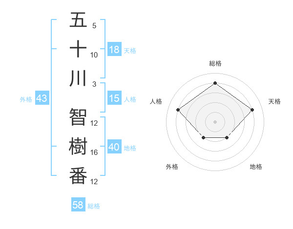 五十川 智樹番さんを姓名の画数から五運を鑑定