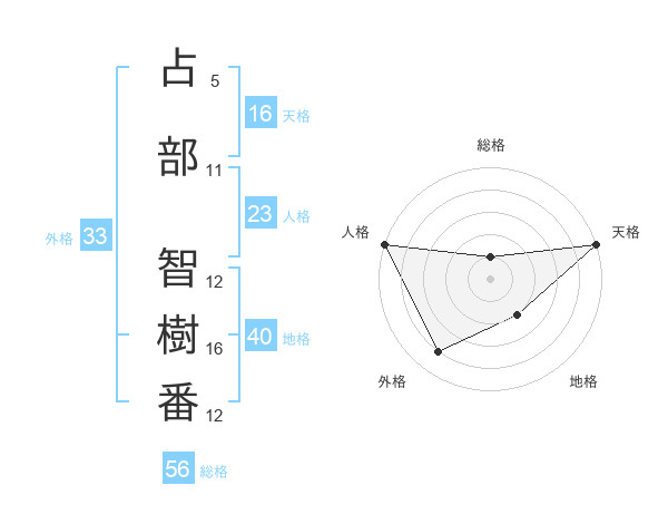 占部 智樹番さんの天格は16画の5点!