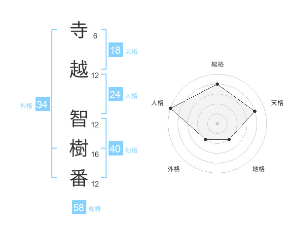 寺越 智樹番さんの総格は58画の4点!