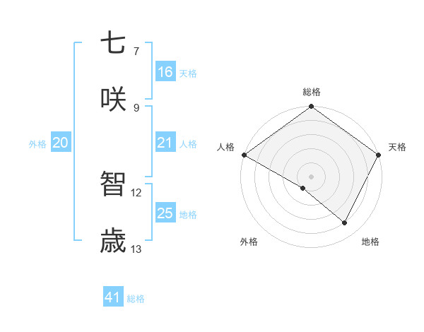 七咲 智歳さんの総格は41画の5点!