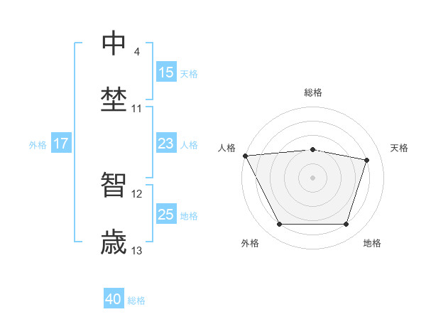 中埜 智歳さんの天格は15画の4点!