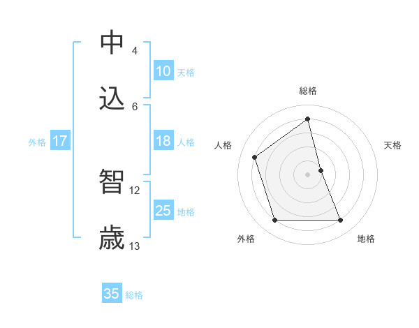 中込 智歳さんの総格は35画の4点!