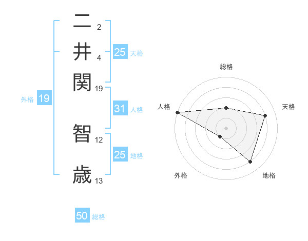 二井関 智歳さんを姓名の画数から五運を鑑定