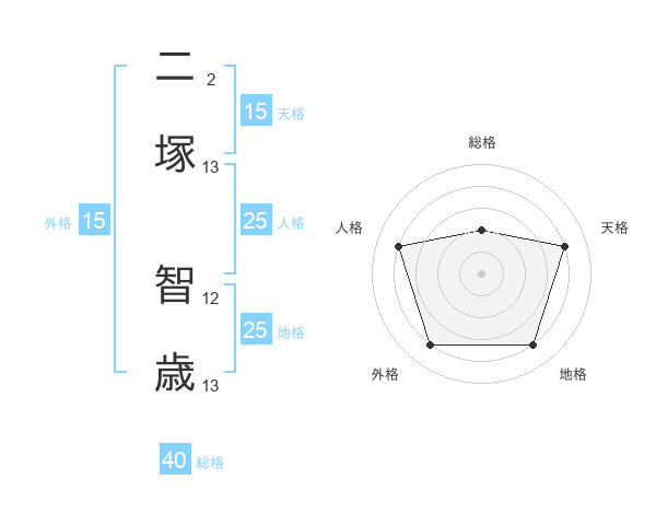 二塚 智歳さんの天格は15画の4点!