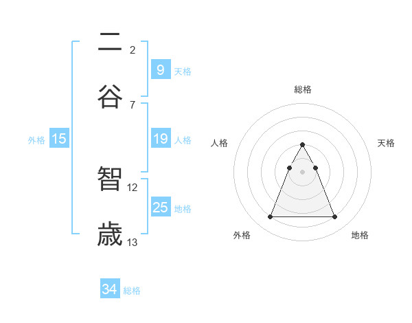 二谷 智歳さんの総格は34画の2点!