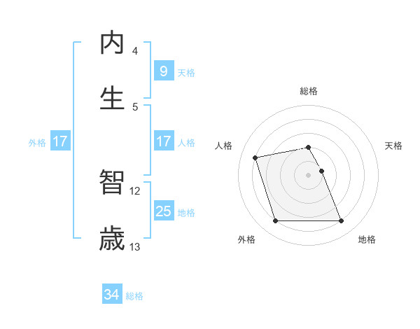 内生 智歳さんの外格は17画の4点!