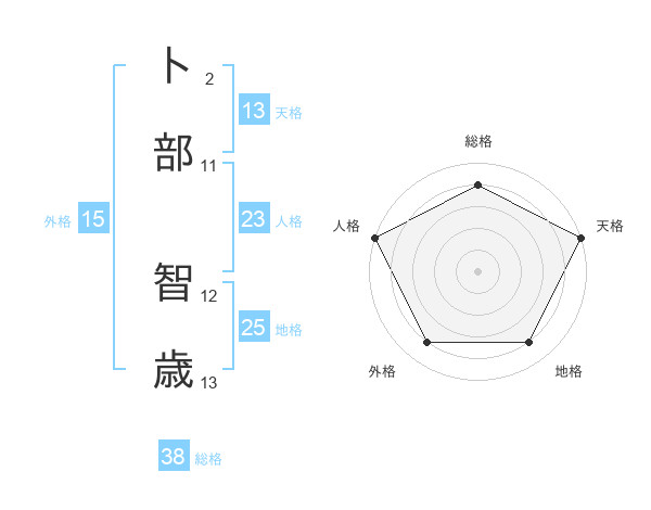 卜部 智歳さんの総格は38画の4点!