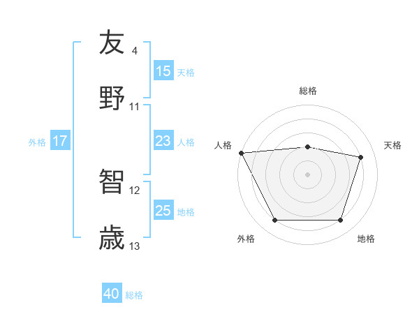 友野 智歳さんの人格は23画の5点!