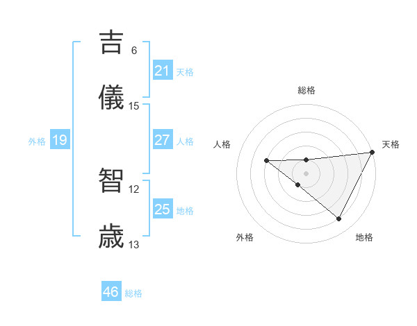 吉儀 智歳さんの天格は21画の5点!