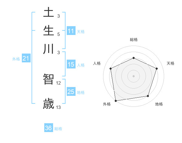 土生川 智歳さんの外格は21画の5点!