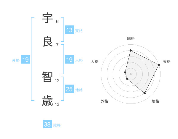 宇良 智歳さんの総格は38画の4点!