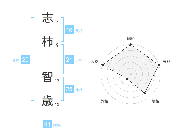 志柿 智歳さんの天格は16画の5点!