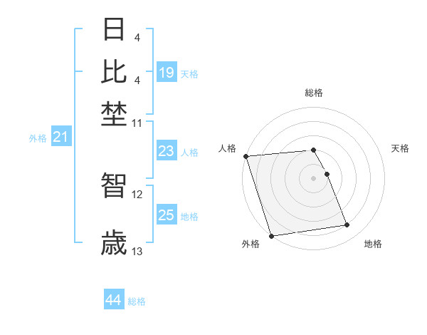 日比埜 智歳さんの外格は21画の5点!