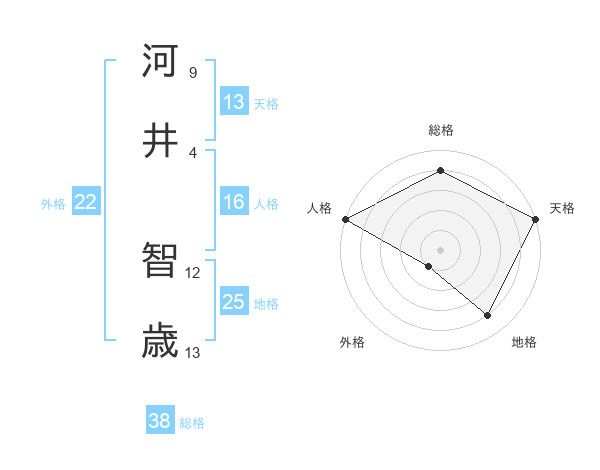 河井 智歳さんの総格は38画の4点!