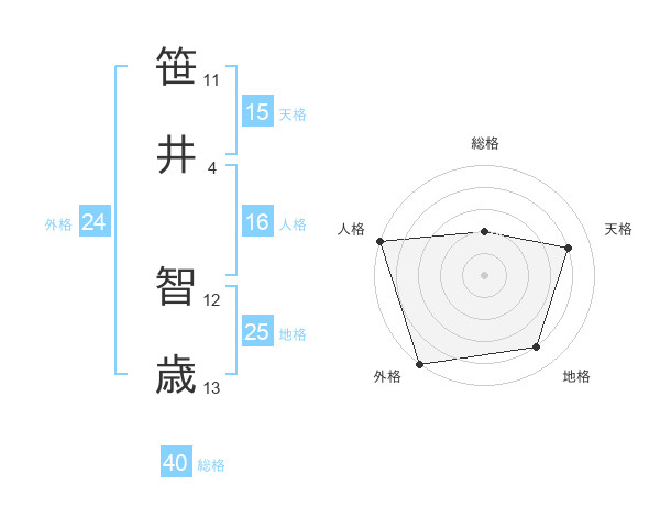 笹井 智歳さんの天格は15画の4点!
