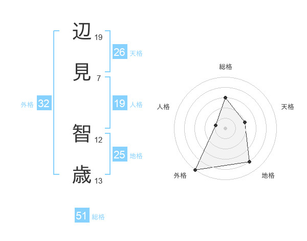 辺見 智歳さんの総格は51画の3点!