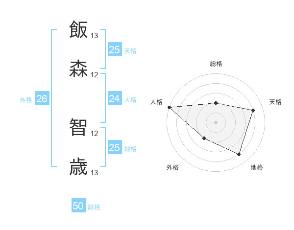 飯森 智歳さんの総格は50画の2点!