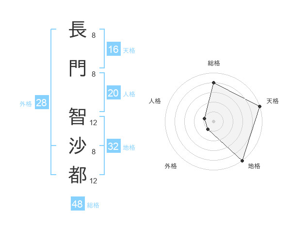 長門 智沙都さんの総格は48画の4点