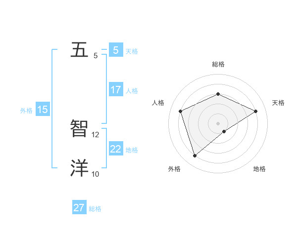 五 智洋さんの総格は27画の3点!