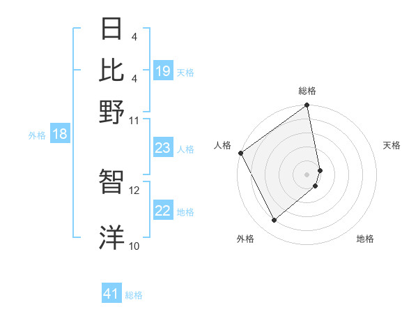 日比野 智洋さんの総格は41画の5点!