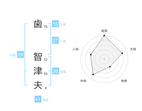 歯 智津夫さんの天格は15画の4点!