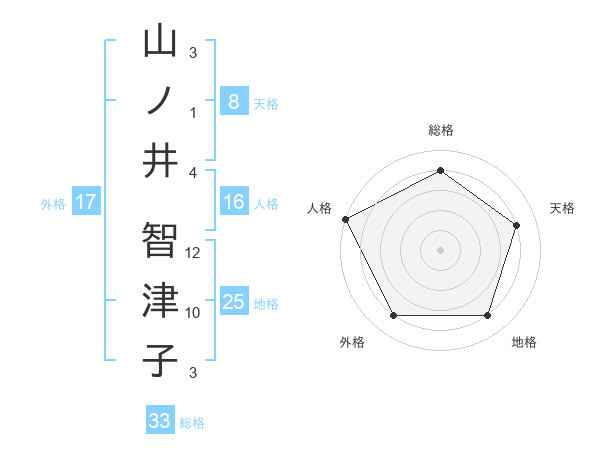 山ノ井 智津子さんを姓名の画数から五運を鑑定