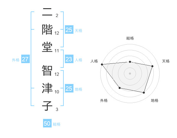 二階堂 智津子さんを姓名の画数から五運を鑑定