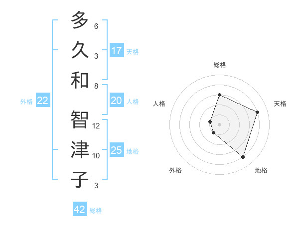 多久和 智津子さんを姓名の画数から五運を鑑定