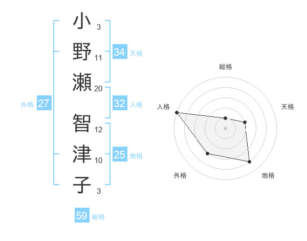 小野瀬 智津子さんを姓名の画数から五運を鑑定
