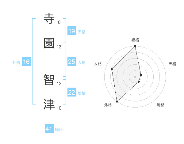 寺園 智津さんの外格は16画の5点!