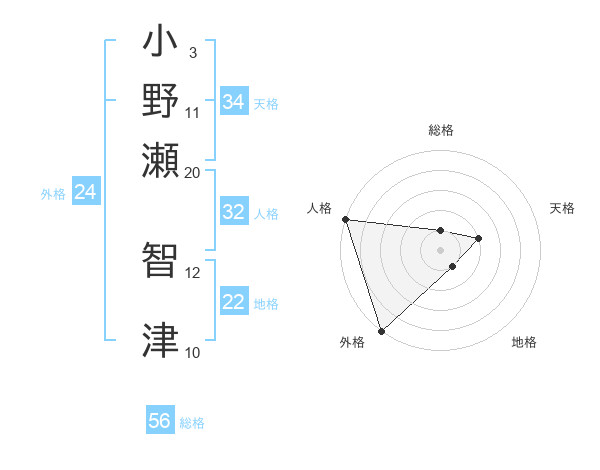 小野瀬 智津さんを姓名の画数から五運を鑑定