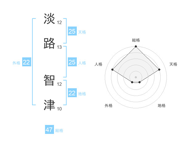 淡路 智津さんの総格は47画の5点!