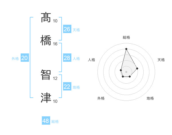 髙橋 智津さんを姓名の画数から五運を鑑定