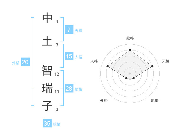 中土 智瑞子さんの総格は35画の4点!