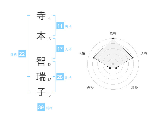 寺本 智瑞子さんの外格は22画の1点!
