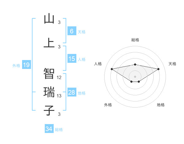 山上 智瑞子さんの天格は6画の4点!