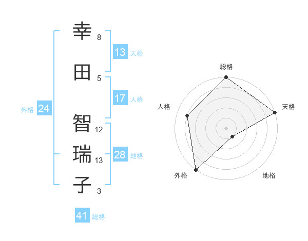 幸田 智瑞子さんの天格は13画の5点!