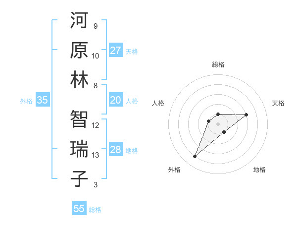 河原林 智瑞子さんを姓名の画数から五運を鑑定