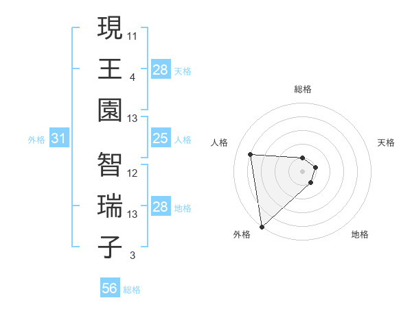 現王園 智瑞子さんを姓名の画数から五運を鑑定
