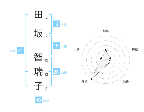 田坂 智瑞子さんの外格は21画の5点!