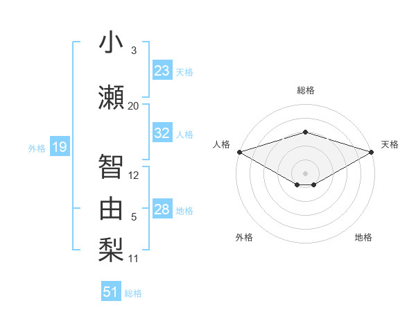 小瀬 智由梨さんを姓名の画数から五運を鑑定