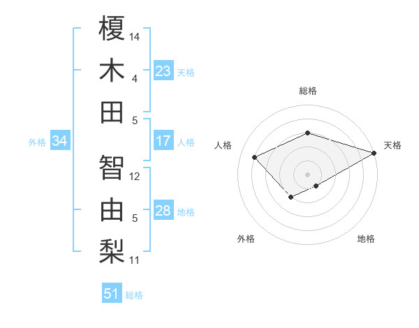 榎木田 智由梨さんを姓名の画数から五運を鑑定