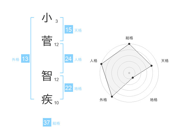 小菅 智疾さんの総格は37画の5点!