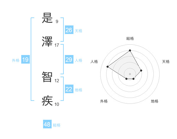 是澤 智疾さんの総格は48画の4点!