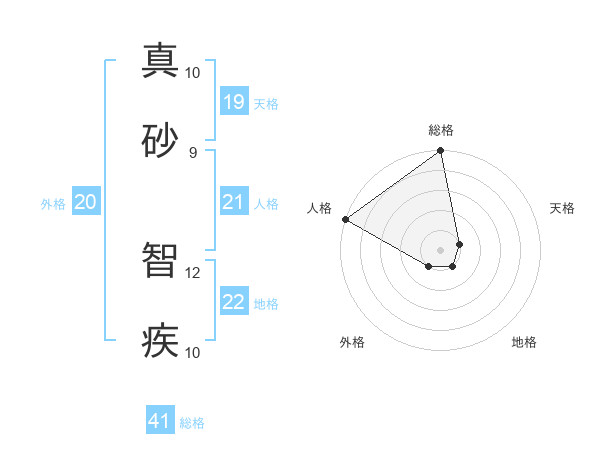 真砂 智疾さんの人格は21画の5点!