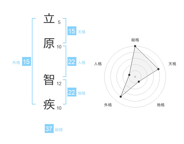 立原 智疾さんの総格は37画の5点!