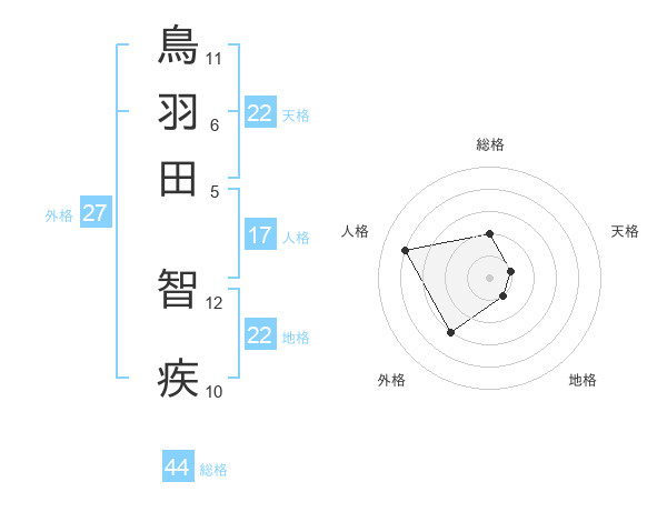 鳥羽田 智疾さんの総格は44画の2点