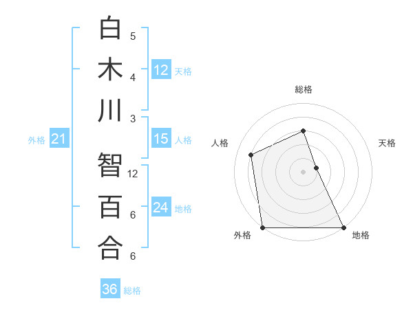 白木川 智百合さんの地格は24画の5点!