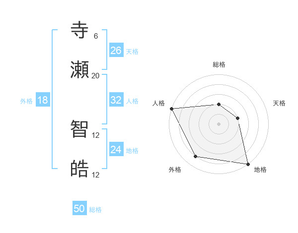 寺瀬 智皓さんの総格は50画の2点!