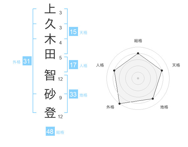 上久木田 智砂登さんを姓名の画数から五運を鑑定